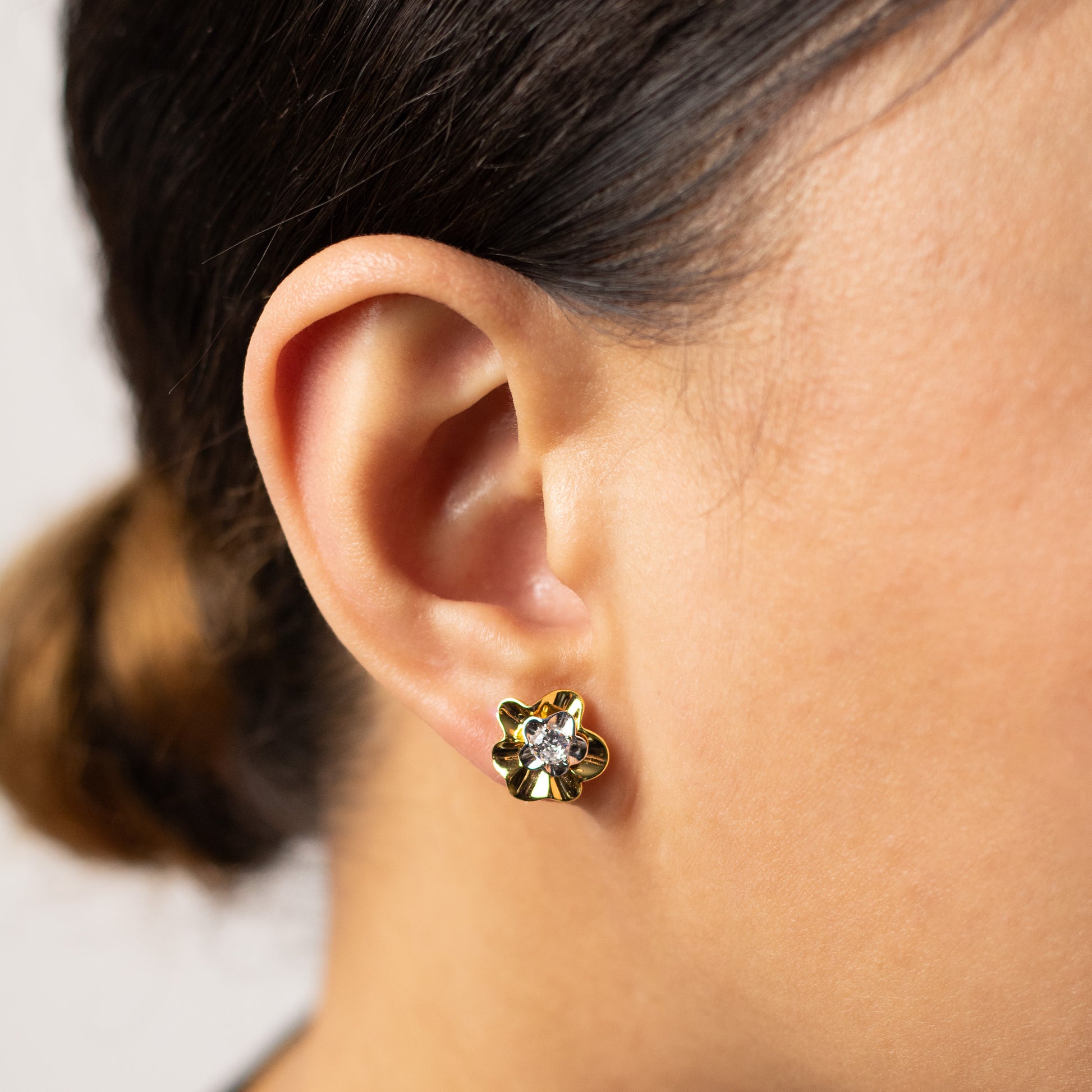 Complete your look with our stunning Daffodil flower earrings. Crafted with 18K electro gold-plated 925 Sterling Silver, these two toned beauties feature elegant Cubic Zirconia accents for a touch of sparkle. Elevate any outfit with these must-have accessories! For a cohesive look, consider pairing them with the matching necklace.